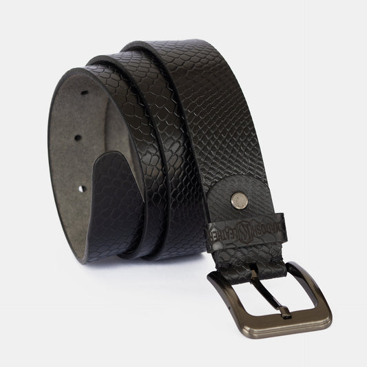 CINTURÓN CUERO NEGRO GRABADO - ENVÍO GRATIS