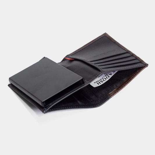 BILLETERA EN CUERO CAFÉ / ANTIRROBO CON TARJETERO AUTOMÁTICO