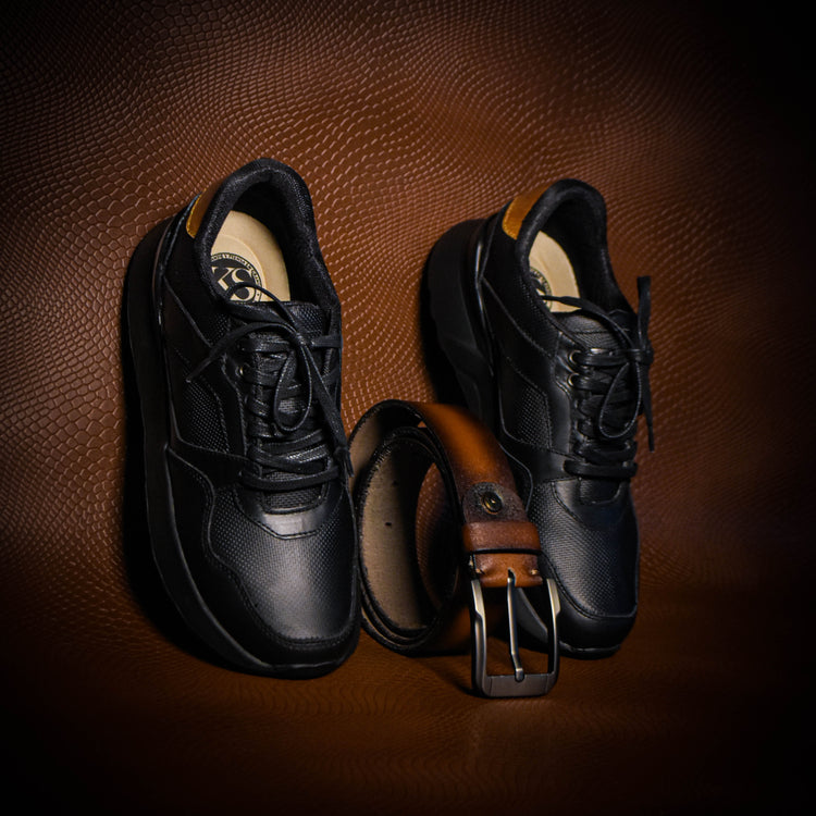 TENIS DAKARY CUERO NEGRO GRABADO - ENVÍO GRATIS