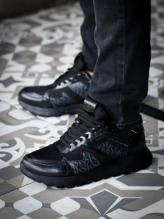 Últimas tallas-TENIS DAKARY CUERO NEGRO GRABADO - ENVÍO GRATIS