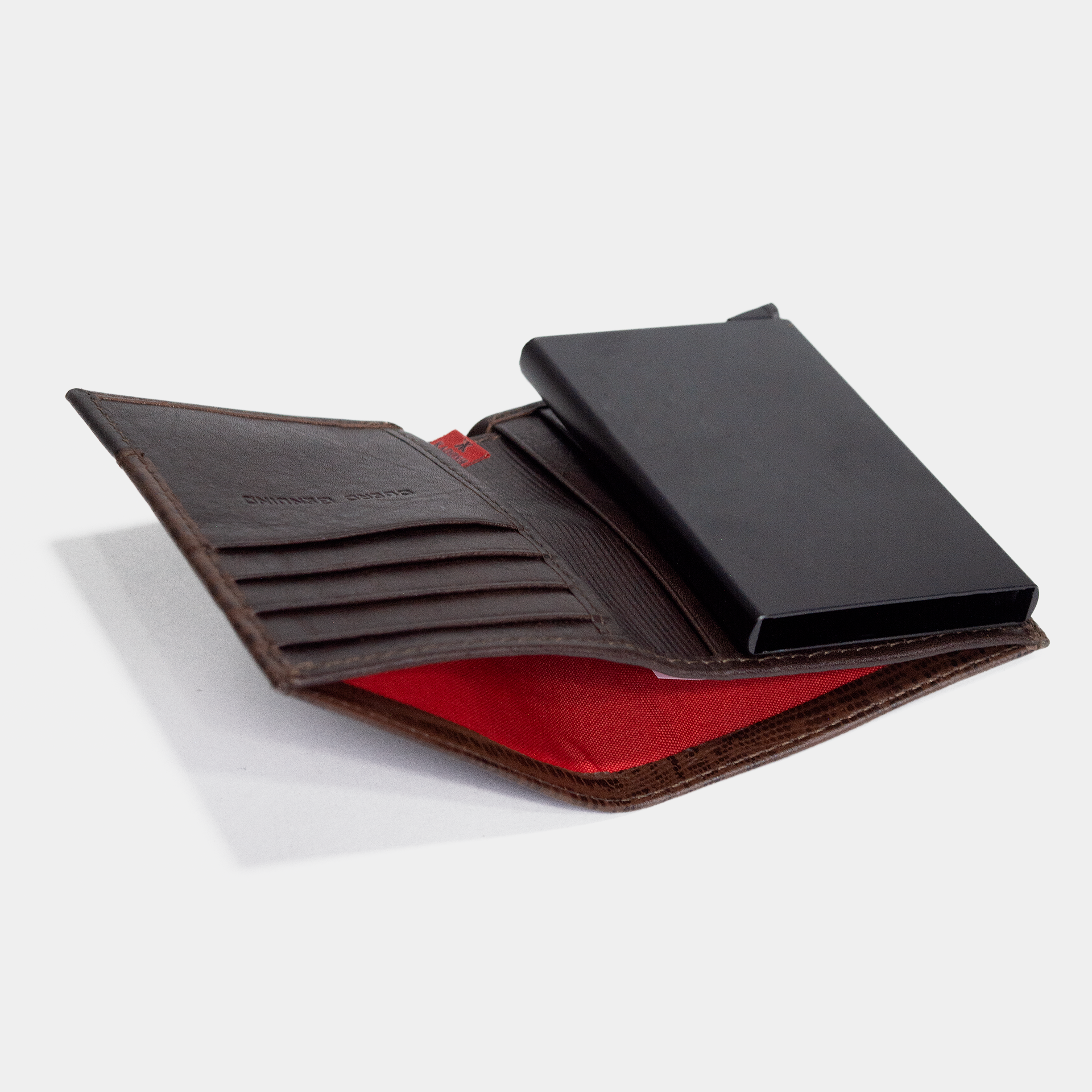 BILLETERA EN CUERO CAFÉ / ANTIRROBO CON TARJETERO AUTOMÁTICO