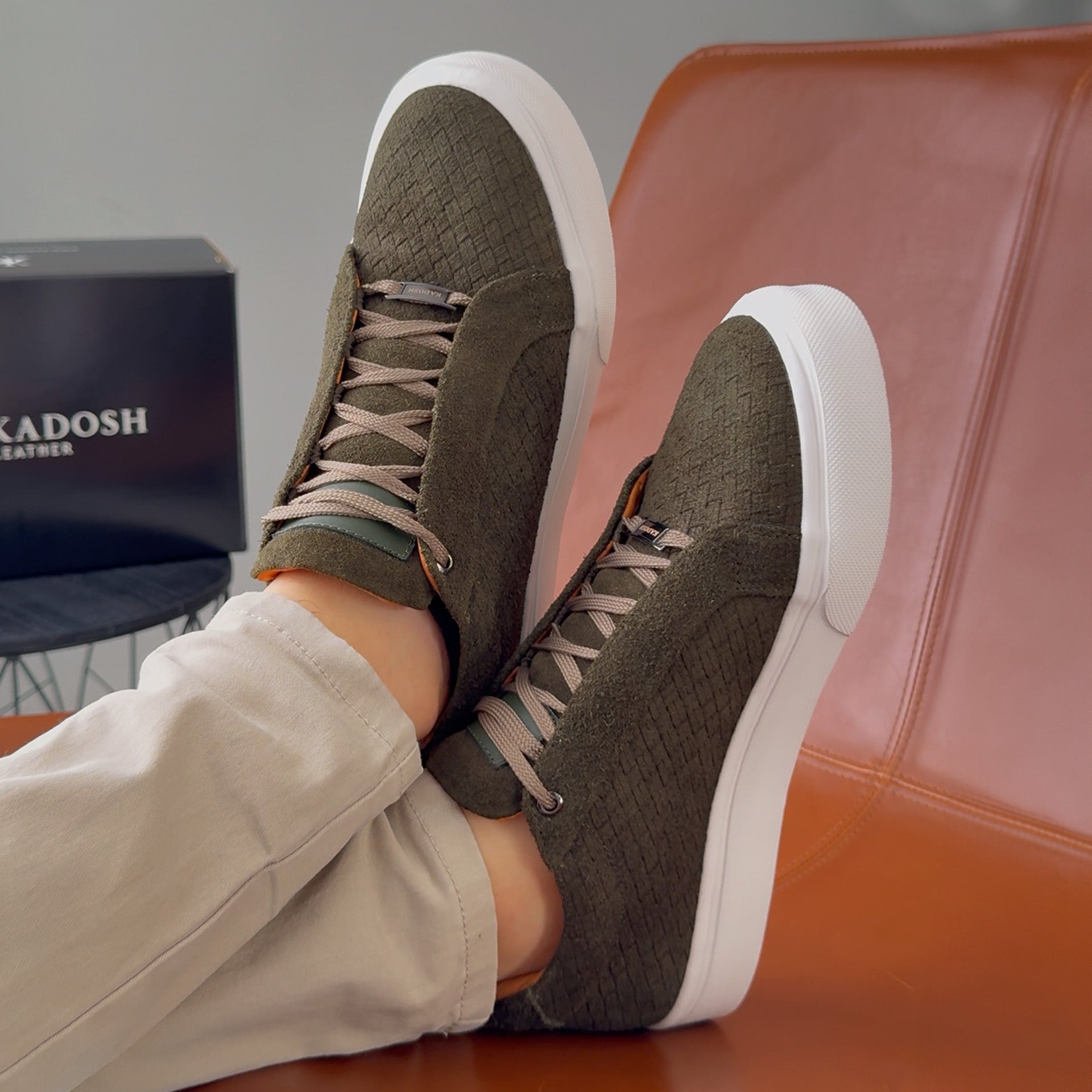 TENIS MONACO CUERO TIPO GAMUZA VERDE - ENVÍO GRATIS